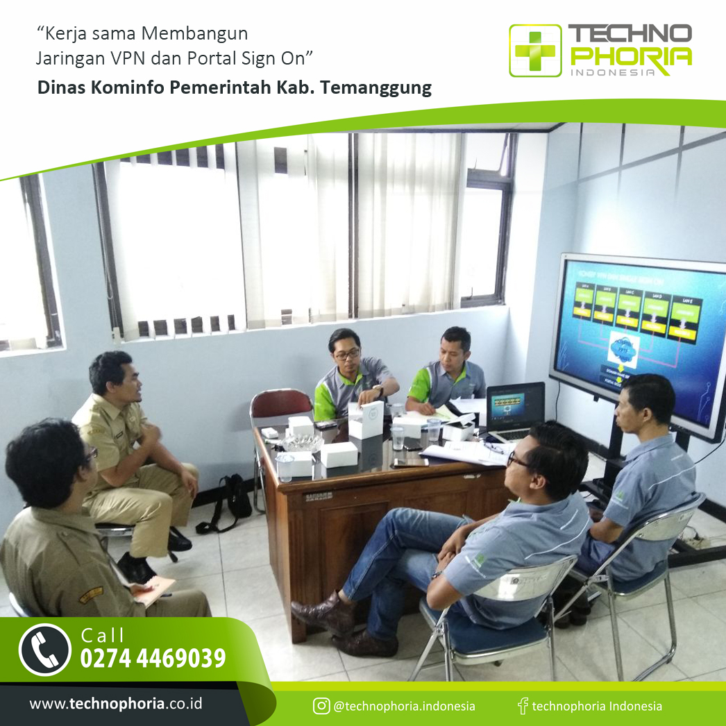 Kerja sama telah di mulai dengan menyiapkan infrastruktur VPN yang mencakup semua aplikasi di seluruh OPD yang berada pada lingkungan pemerintah Kabupaten Temanggung. Untuk melengkapi VPN tersebut juga di bangun sebuah portal untuk akses masuk dengan menggunakan konsep Single Sign On atau sekali login untuk semua aplikasi yang ada sehingga memudahkan pemangku kepentingan dalam melakukan monitoring terhadap akses dan semua aplikasi yang ada. Diharapkan dengan tersedianya jaringan VPN dan portal Single Sign On maka semua aplikasi yan selama ini tersebar dan dapat di akses publik dapat terjaga keamanannya. (ADM)