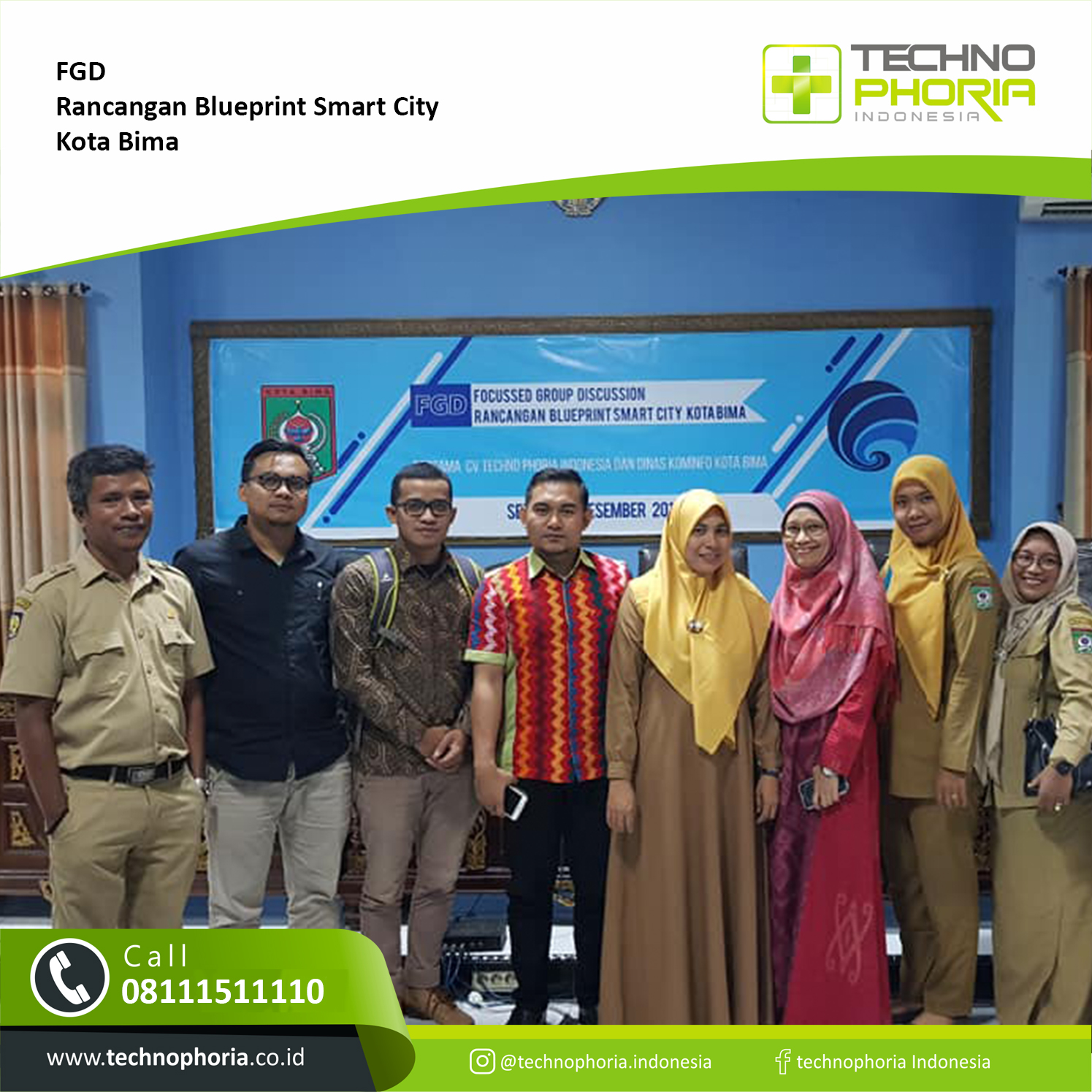 Tahun 2019 ini Technophoria Indonesia mendapatkan amanah dari Pemerintah Kota Bima untuk menyusun rencana induk / blueprint smart city Kota Bima. Technophoria menerjunkan 3 tim ke kota Bima yang akan bertanggung jawab atas job desc masing-masing. Ketiga tim tersebut mengawali pekerjaan dengan melakukan survey kondisi existing dari insfrastruktur jaringan, perangkat keras pendukug, aplikasi pemerintahan dan tata kelola yang telah dijalankan selama ini. sl temuan dari tim technophoria tersebut akan dipadukan dengan visi misi kota bima